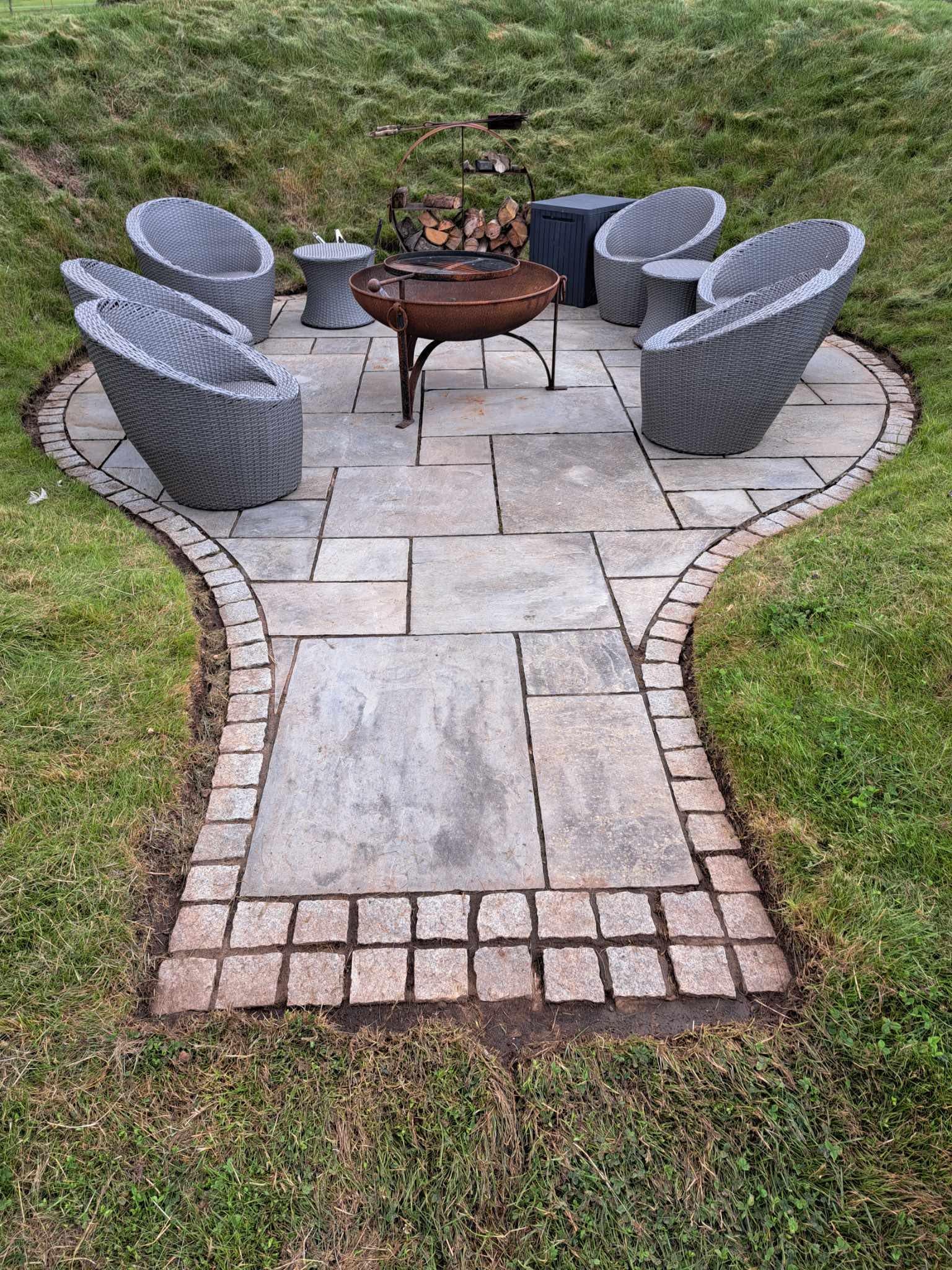 James came up with a great design which flattened our garden whilst embracing the existing tiered fences with a raised patio and sleeper-flower beds. He put in drainage under the ground which we didn’t even think to ask for.